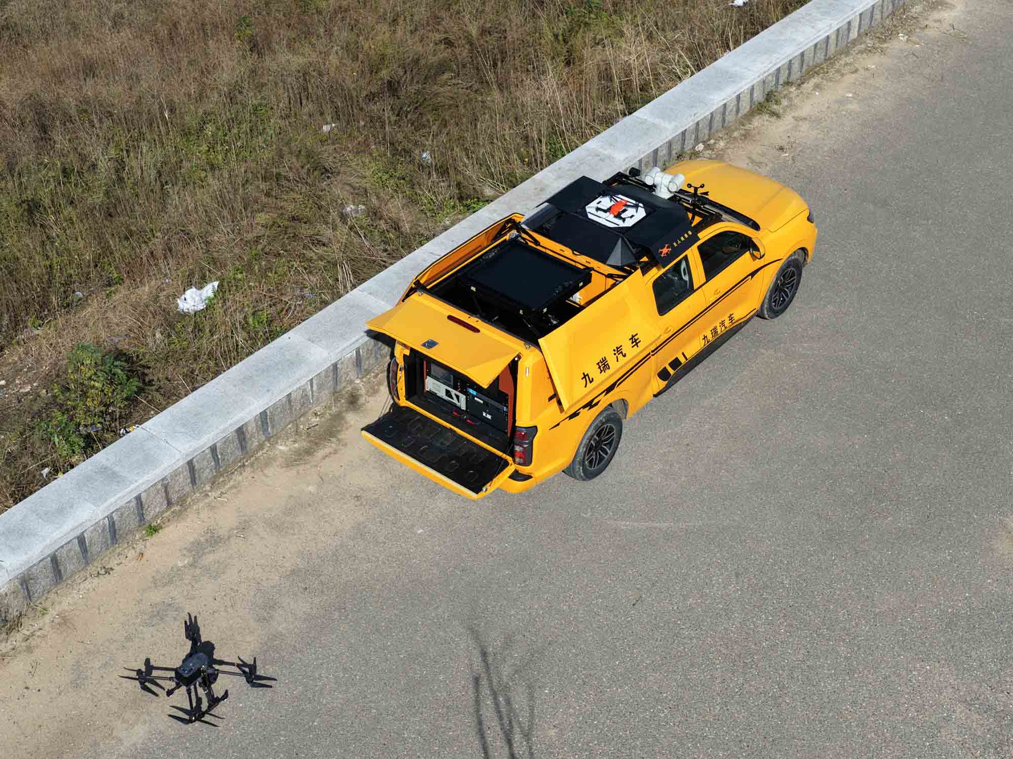 九瑞河道無人機(jī)巡檢車是一款融合“地面移動(dòng)平臺(tái)+空中無人機(jī)群+智能算法中樞”的一體化水域監(jiān)測(cè)裝備,專為解決傳統(tǒng)水利巡檢效率低、成本高、覆蓋不全面等痛點(diǎn)而設(shè)計(jì)。該產(chǎn)品以智慧技術(shù)為核心驅(qū)動(dòng)力,通過雙機(jī)協(xié)同作業(yè)與全自動(dòng)流程管控,實(shí)現(xiàn)從水域動(dòng)態(tài)監(jiān)測(cè)、異常目標(biāo)識(shí)別到數(shù)據(jù)實(shí)時(shí)研判的全鏈條智能化,重塑水利監(jiān)測(cè)新標(biāo)桿。