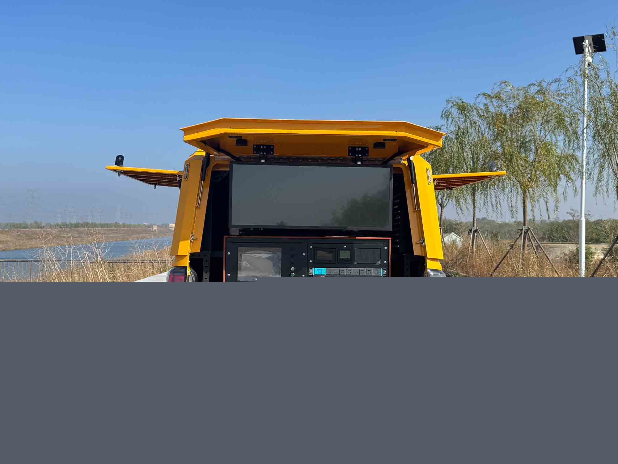 地面移動(dòng)平臺(tái):配備全地形越野底盤,具備強(qiáng)大的復(fù)雜路況適應(yīng)性,可輕松應(yīng)對(duì)河道沿岸泥濘、坡度等復(fù)雜地形,確保設(shè)備在各類水域周邊高效部署。車輛集成雙電倉秒換電系統(tǒng),支持無人機(jī)快速補(bǔ)能,配合車載供配電模塊,可實(shí)現(xiàn)72小時(shí)不間斷作業(yè),突破傳統(tǒng)無人機(jī)續(xù)航瓶頸。駕駛艙副駕設(shè)置智能操控終端,實(shí)現(xiàn)一鍵完成無人機(jī)起降、數(shù)據(jù)傳輸、智能分析等核心操作,降低人工操作門檻。