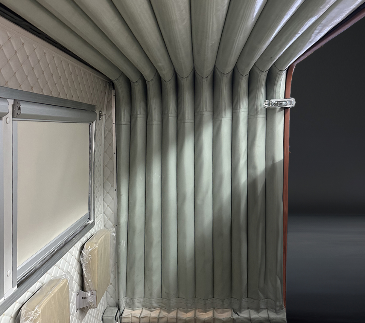 采用雙側(cè)拉廂式艙體,內(nèi)設(shè)多功能會(huì)議桌、9把高端定制會(huì)議椅、10把折疊座椅,空間寬敞,可滿足19人同時(shí)會(huì)議功能。