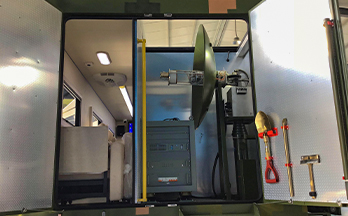 該衛(wèi)星通信指揮車(chē)配備衛(wèi)星通信、地面無(wú)線(xiàn)通信等多種方式,各通信方式互為補(bǔ)充、備份, 保證在任何情況下通信不中斷,為順利完成各項(xiàng)任務(wù)提供可靠的保障。